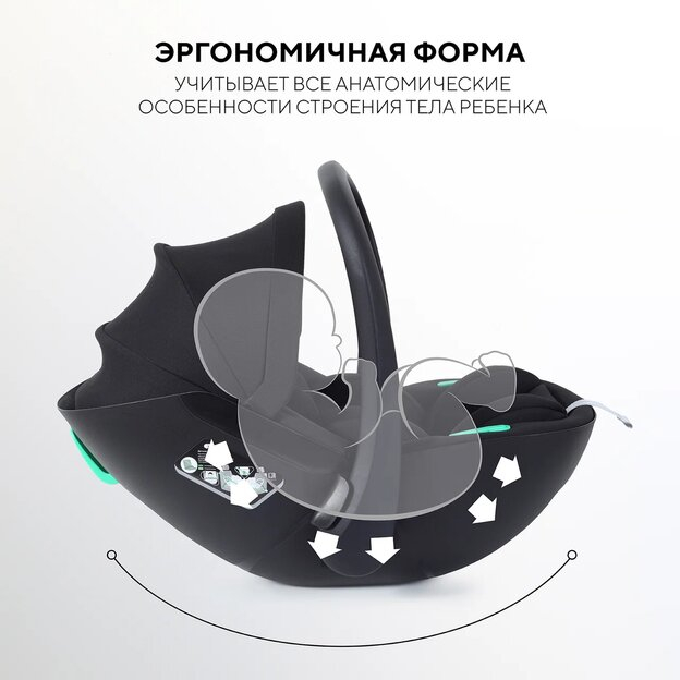 - полукруглое основание позволяет укачивать кроху, когда автолюлька стоит на полу