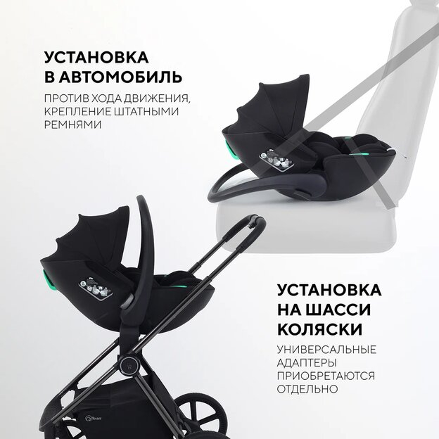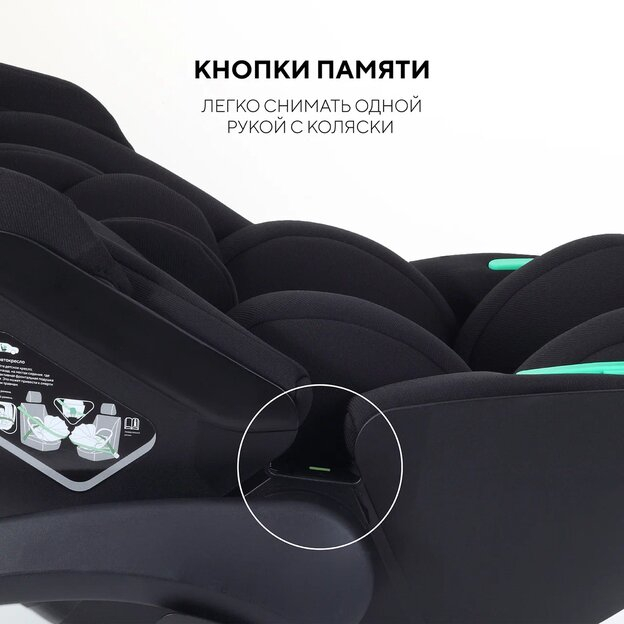 - автолюльку можно закрепить на базе коляски* с помощью адаптеров (приобретаются отдельно). Аксессуар легко и быстро снимается одной рукой с базы коляски благодаря кнопкам памяти.