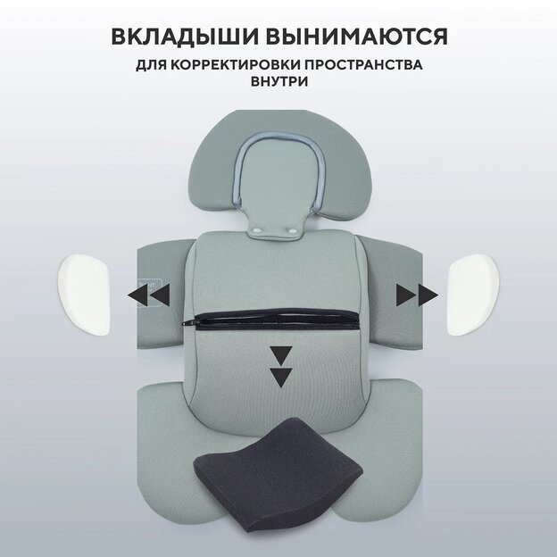 - анатомический вкладыш-матрасик Memory foam обеспечит не только комфорт, но и мягкую защиту, а также идеальное положение тела малыша на протяжении всей поездки. Вкладыши в матрасике (3 штуки) можно вынуть для корректировки пространства внутри, а также для стирки аксессуара.