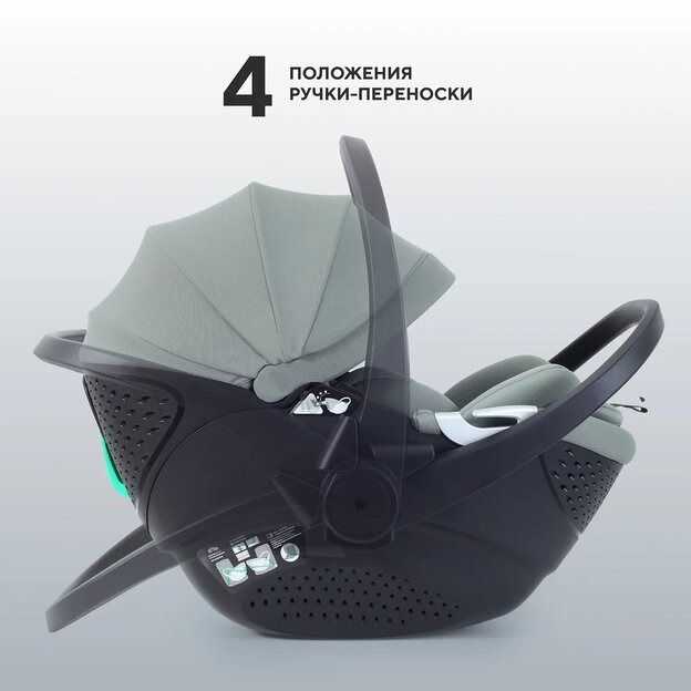 - удобная ручка-переноска регулируется в 4 положениях. В нижнем положении ручка выступает стопором, предотвращающим укачивание.