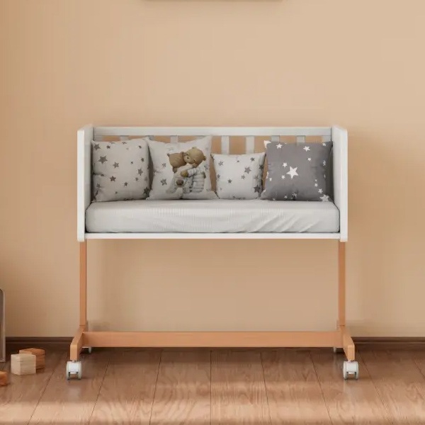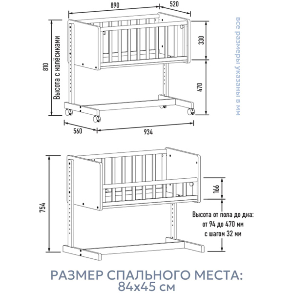 • Компактность и мобильность – благодаря небольшим габаритам и колесикам кроватку можно легко перемещать по комнате или дому, идеально подходит для маленьких пространств.
