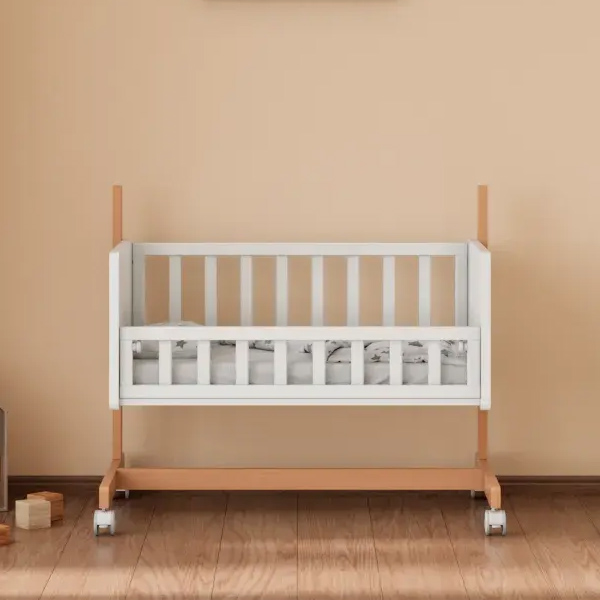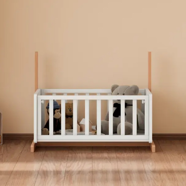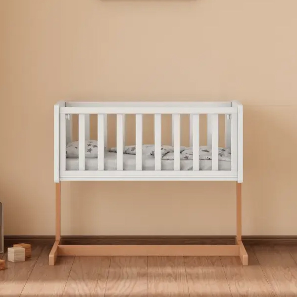 • Функция приставной кроватки – съемный бортик и специальные крепления надежно фиксируют колыбель рядом с родительской кроватью, исключая зазоры.