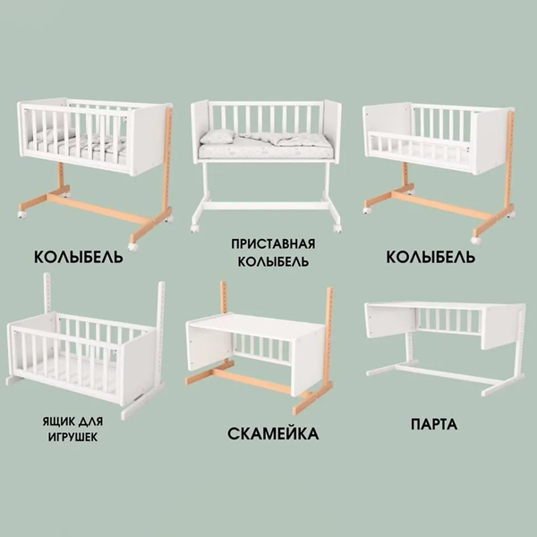 • Многофункциональность – после того как малыш подрастет, колыбель превращается в диванчик или кушетку, столик для игр и творчества, вместительный ящик для хранения игрушек