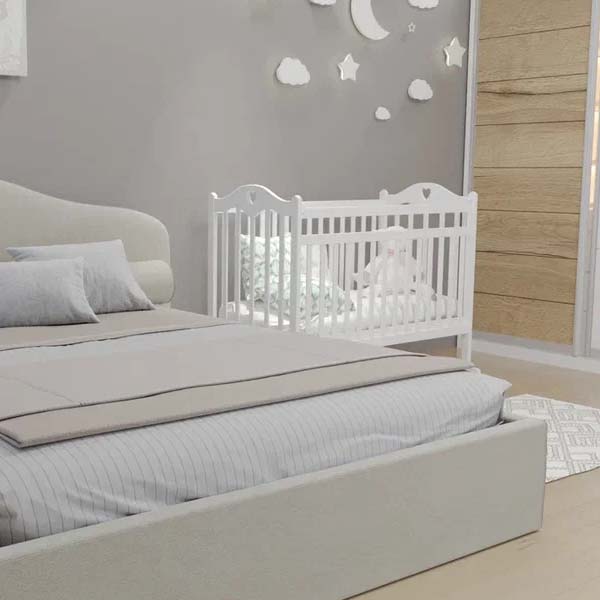 • можно использовать в двух вариантах: как кроватку-качалку, или как кроватку на колёсах. Для этого достаточно просто снять или поставить колёса роликовые опоры помогут легко перемещать кроватку на нужное место, а укачивающий механизм подарит малышу по настоящему крепкий сон