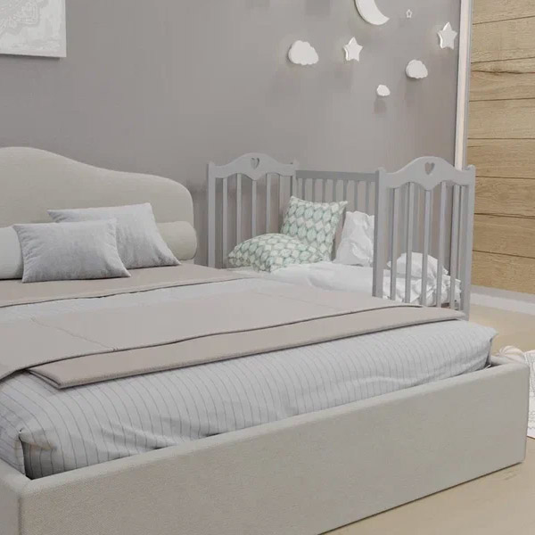 • подматрасник кроватки выполнен в виде ортопедической сетки из неокрашенного материала. Он устанавливается в двух положениях