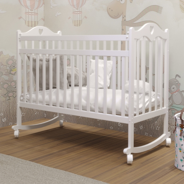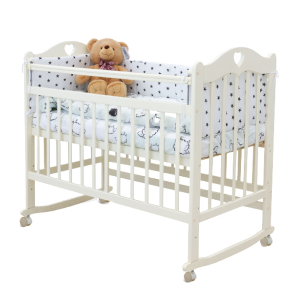 - можно использовать в двух вариантах: как кроватку-качалку, или как кроватку на колёсах. Для этого достаточно просто снять или поставить колёса роликовые опоры помогут легко перемещать кроватку на нужное место, а укачивающий механизм подарит малышу по настоящему крепкий сон