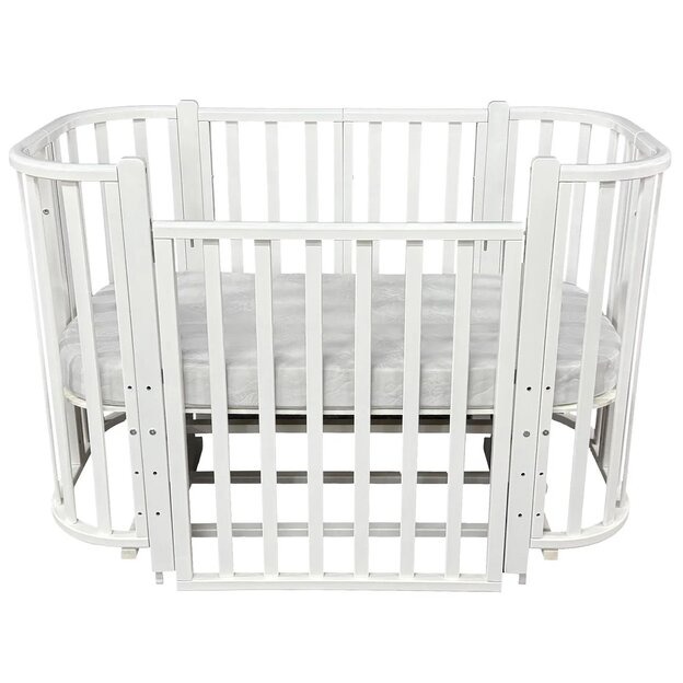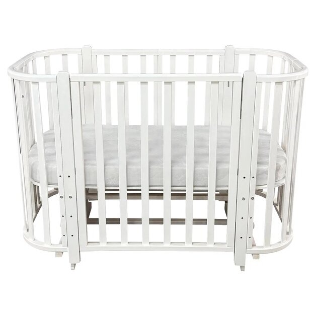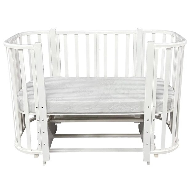Детская кроватка "Esenia" – это современное решение для магазинов, предлагающих качественную мебель для малышей. Модель сочетает в себе практичность и функциональность: кроватку можно использовать как классическую на колесиках, так и с поперечным маятниковым механизмом для укачивания. Съемная автостенка обеспечивает удобный доступ к ребенку и возможность использовать кровать в качестве диванчика. Конструкция выполнена из массива берёзы, отличается надежностью и долговечностью.