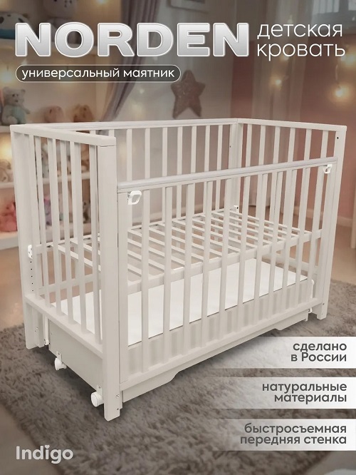 Детская кроватка Indigo Norden сочетает в себе высокую функциональность, эргономичный дизайн и комфорт в использовании.