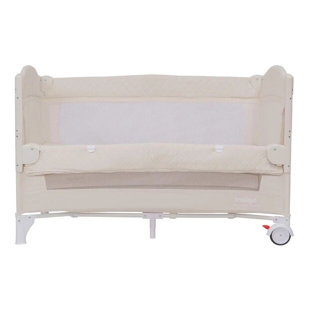 Indigo Bon-Bon Toy – функциональная и продуманная модель 3в1: кровать, манеж и приставная колыбель. Подходит для малышей с рождения до 3 лет.