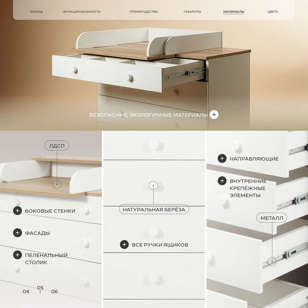 • комод изготовлен из высококачественных и экологически чистых материалов
