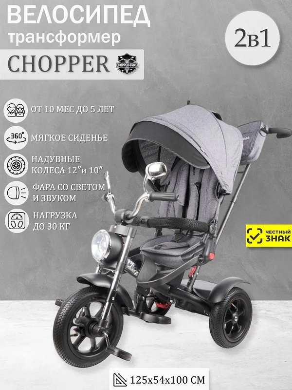 Купить Велосипед трехколесный Chopper CH1GY-1 с ручкой управления цвет: серый можно в интернет-магазине Мир колясок Брянск, для этого необходимо поместить товар в корзину и оформить заказ. Подробное описание, характеристики, отзывы, фотографии. Все вопросы и пожелания просьба указывать в комментариях к заказу.