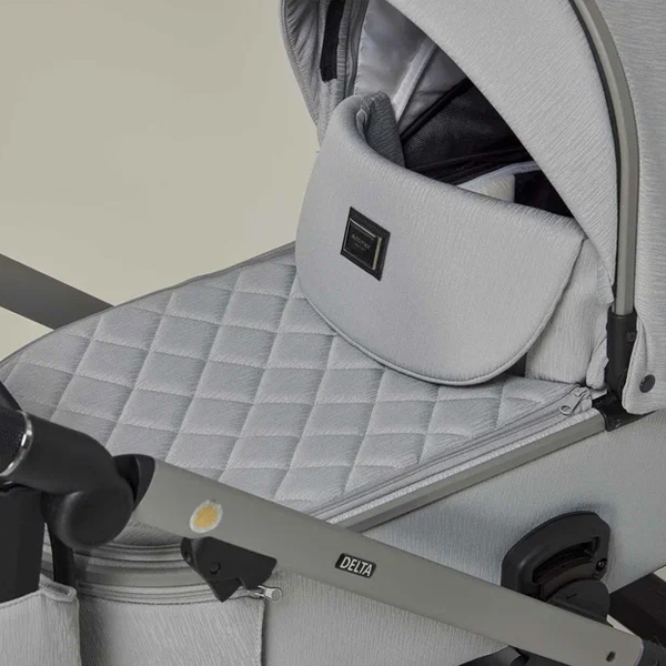 • Амортизация коляски расположена в переднем и заднем колесных блоках, благодаря чему Delta будет отлично передвигаться по любой поверхности.