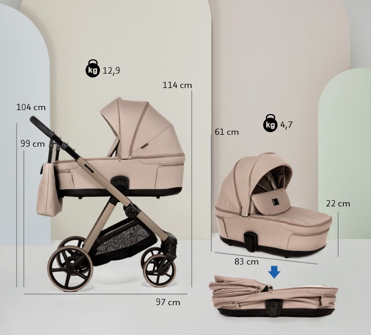 - Коляска в собранном виде (Д х В х Ш) – 114 х 97 х 59 см.