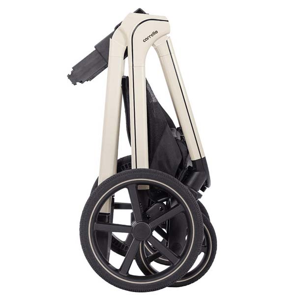 • Раму можно компактно сложить вместе с установленным на ней прогулочным блоком для хранения и транспортировки коляски в багажнике авто.