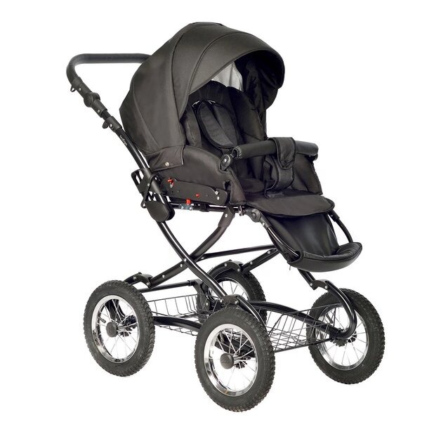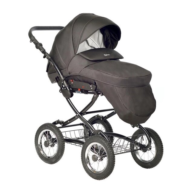 Большие накачиваемые колеса превращают коляску в настоящий внедорожник, который отлично едет как по снегу, так и песку. Вы можете отправляться на прогулку даже по самым смелым маршрутам.