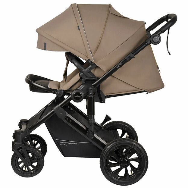 Indigo Coin 2 в 1 - качественная универсальная коляска с люлькой, прогулочным блоком и полезными аксессуарами в комплекте. Легкое алюминиевое шасси, плотный тканевый материал с утеплением и защитой от воды и солнца.