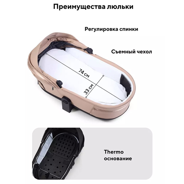 - выполнена по технологии thermо. Особый материал, из которого создано основание, идеально поддерживает микроклимат внутри: на улице жарко - в люльке прохладно, на улице холодно - в люльке тепло. В то же время высокотехнологичный композитный материал характеризуется легким весом и ударопрочностью.