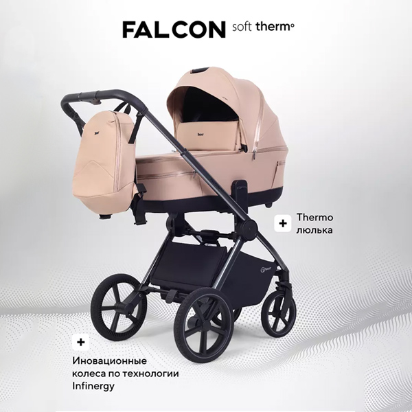 Революционную флагманскую модель мы дополнили новым уникальным функционалом. В руках родителей малыша RANT FALCON SOFT THERM превратится в настоящий инструмент для сохранения активного образа жизни и создания светлых семейных воспоминаний. Детская коляска 2 в 1 последнего поколения удивит вас: инновационными колесами E-TPU по технологии Infinergy®, системой антишок (SAS) на передних колесах, невероятно мягким ходом благодаря амортизаторам, термолюлькой, регулировкой блоков по высоте, регулировкой капюшона по высоте, уникальной вентиляционной системой 360°, быстросъемной люлькой с памятью кнопок, магнитным замком на ремне безопасности, отточенным энергичным дизайном.