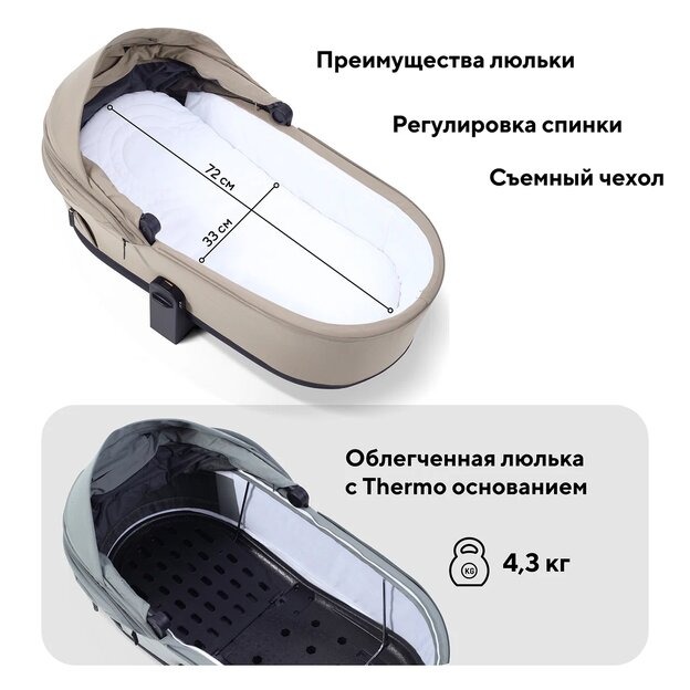 - Термодно в люльке гарантирует ребенку комфортные условия в любое время года. Летом люлька не нагревается, обеспечивается хорошая циркуляция воздуха. Зимой люлька не промерзает, сохраняя тепло и надежно защищая ребенка от холодов.
