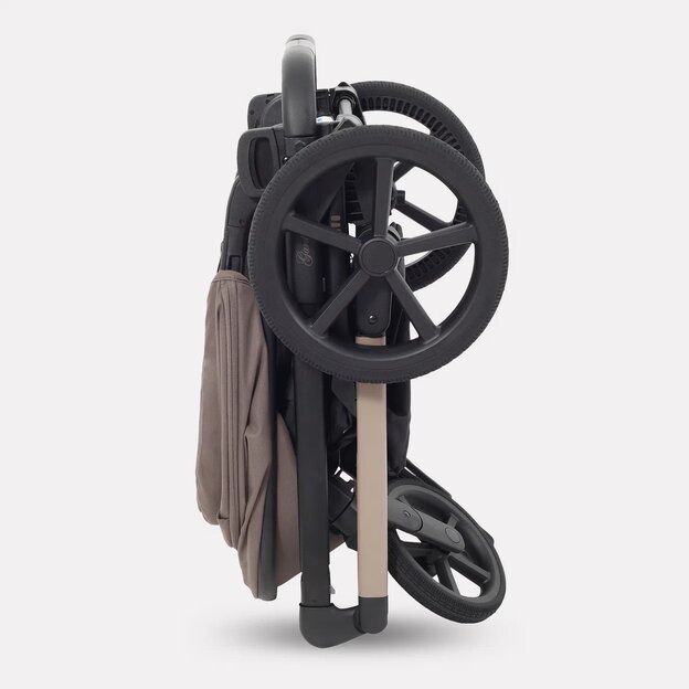 - сложенную коляску удобно катить за собой, выдвинув телескопическую (родительскую) ручку
