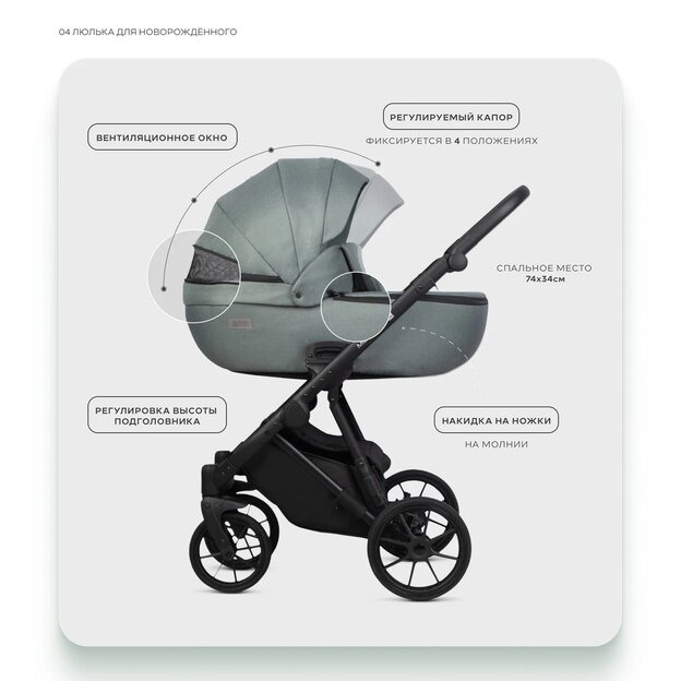 - для лучшей герметичности накидка на ножки пристегивается к люльке на молнии