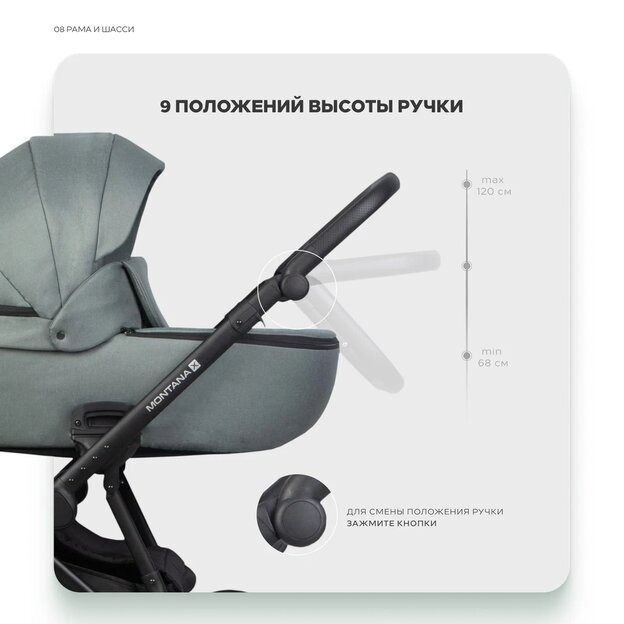 Возможность изменять высоту ручки. Это актуально, если человек, гуляющий с коляской, высокого или наоборот, небольшого роста.