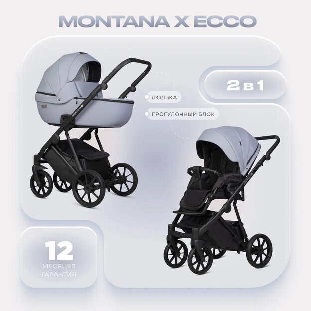 Обновленный дизайн топовой детской коляски 2 в 1 добавил модели актуальности и сделал ее еще комфортней и безопасней. RIKO BASIC MONTANA X ECCO покорит вас: новой архитектурой прогулочного блока; быстросъемными блоками с эффектом памяти; спинкой люльки, регулируемой с внешней стороны блока; регулируемой вентиляцией в дне люльки; мягкой регулируемой амортизацией; системой антишок на передних колесах; регулировкой капюшона с одной кнопки.