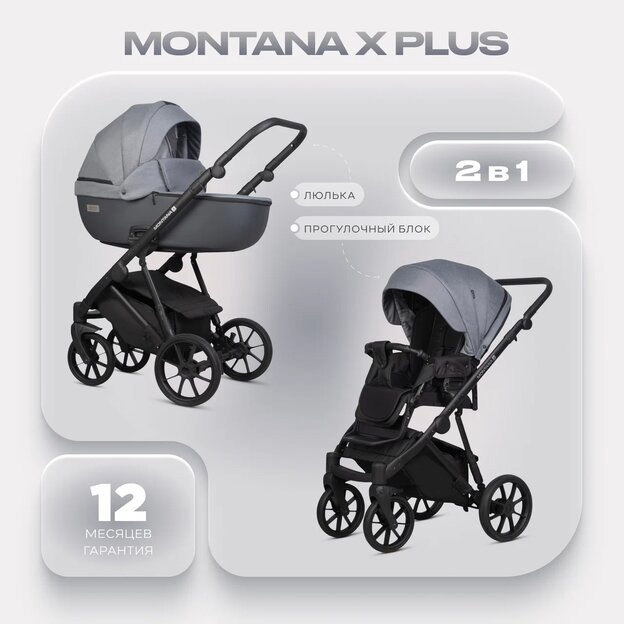 Обновленный дизайн топовой детской коляски 2 в 1 добавил модели актуальности и сделал ее еще комфортней и безопасней. RIKO BASIC MONTANA X PLUS покорит вас: новой архитектурой прогулочного блока; быстросъемными блоками с эффектом памяти; спинкой люльки, регулируемой с внешней стороны блока; регулируемой вентиляцией в дне люльки; мягкой регулируемой амортизацией; системой антишок на передних колесах; регулировкой капюшона с одной кнопки.