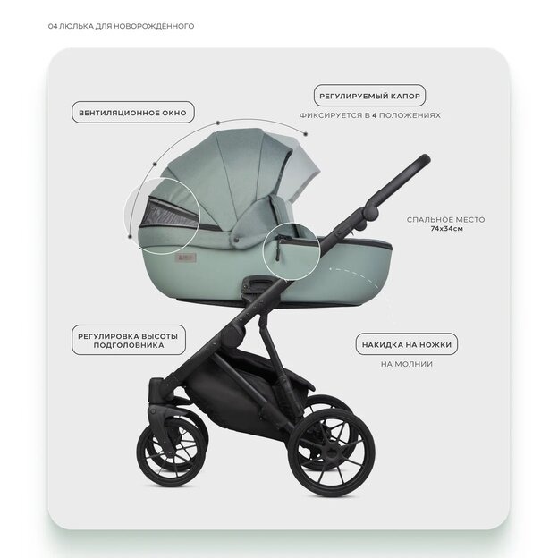 • для лучшей герметичности накидка на ножки пристегивается к люльке на молнии