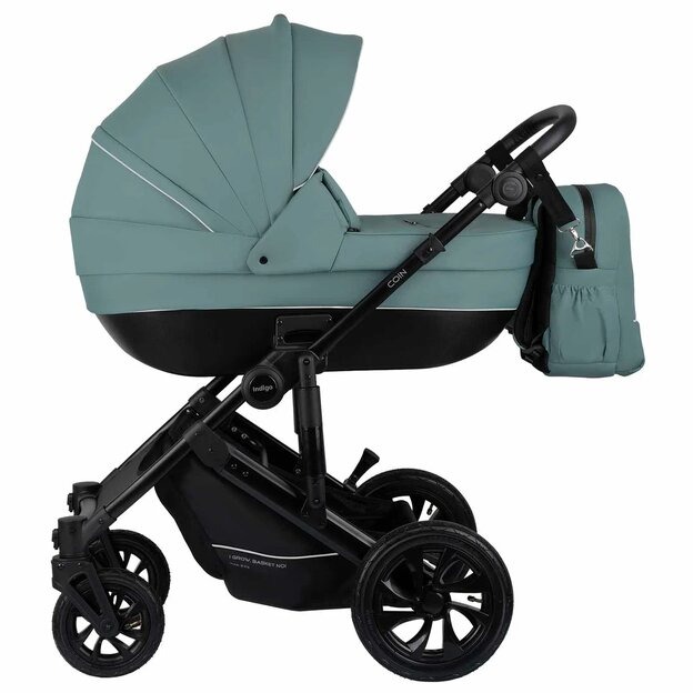 Indigo Coin 3 в 1 - качественная универсальная коляска с люлькой, прогулочным блоком, автокреслом и полезными аксессуарами в комплекте. Легкое алюминиевое шасси, плотный тканевый материал с утеплением и защитой от воды и солнца.
