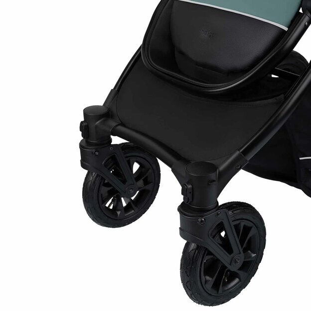Большие надувные колеса и мягкая амортизация коляски обеспечивают плавное и комфортное движение по неровным поверхностям. Колеса улучшенной проходимости с системой амортизации и дополнительными амортизаторы на шасси превосходно сглаживают любые неровности и едут как по асфальту, так и снегу или песку.