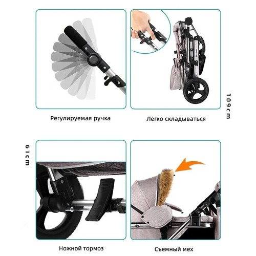 Возможность изменять высоту ручки. Это актуально, если человек, гуляющий с коляской, высокого или наоборот, небольшого роста.