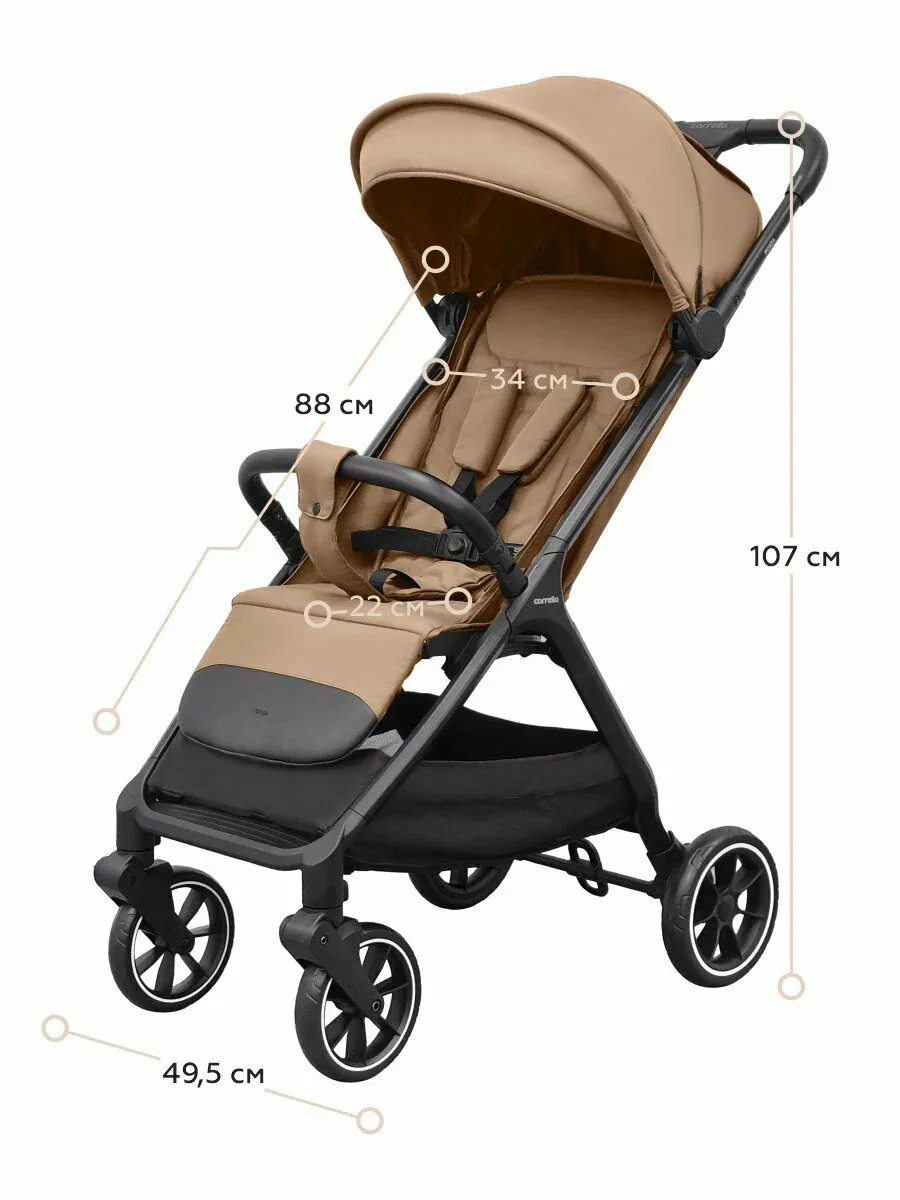 - Для складывания коляски достаточно всего одной руки. Коляска складывается автоматически и сохраняет вертикальное положение, не касаясь текстилем поверхности, на которой стоит. Блокируется от случайного складывания и раскладывания.