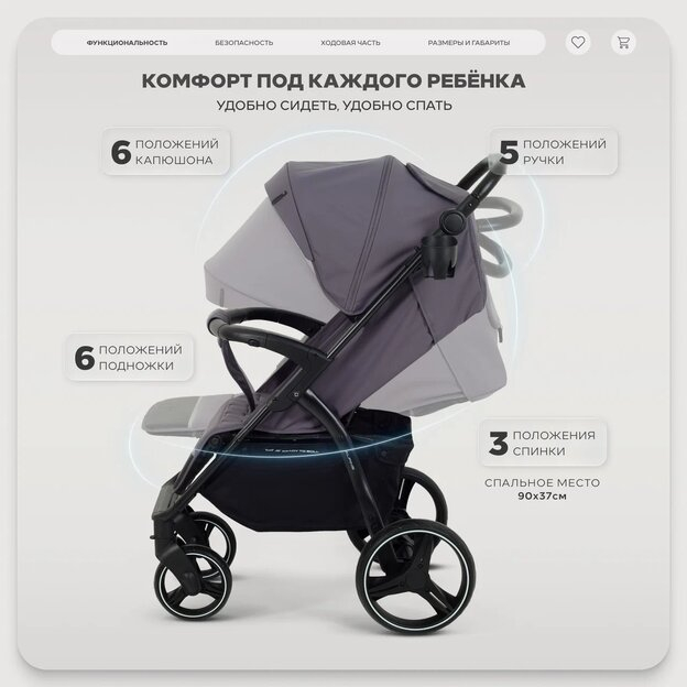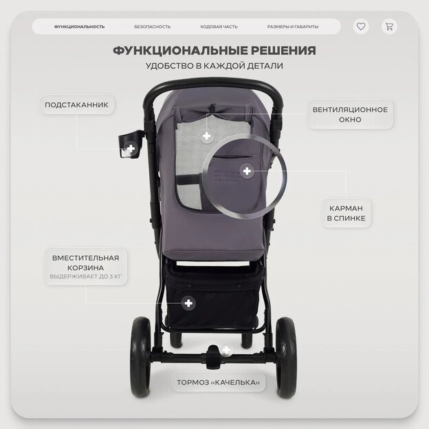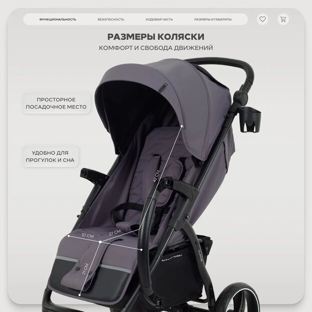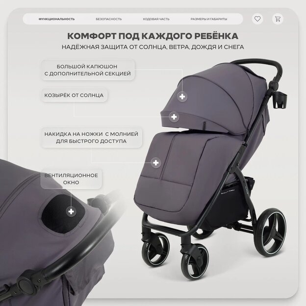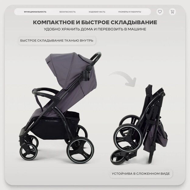 • сиденье малыша не будет пачкаться при транспортировке - коляска складывается чехлом внутрь